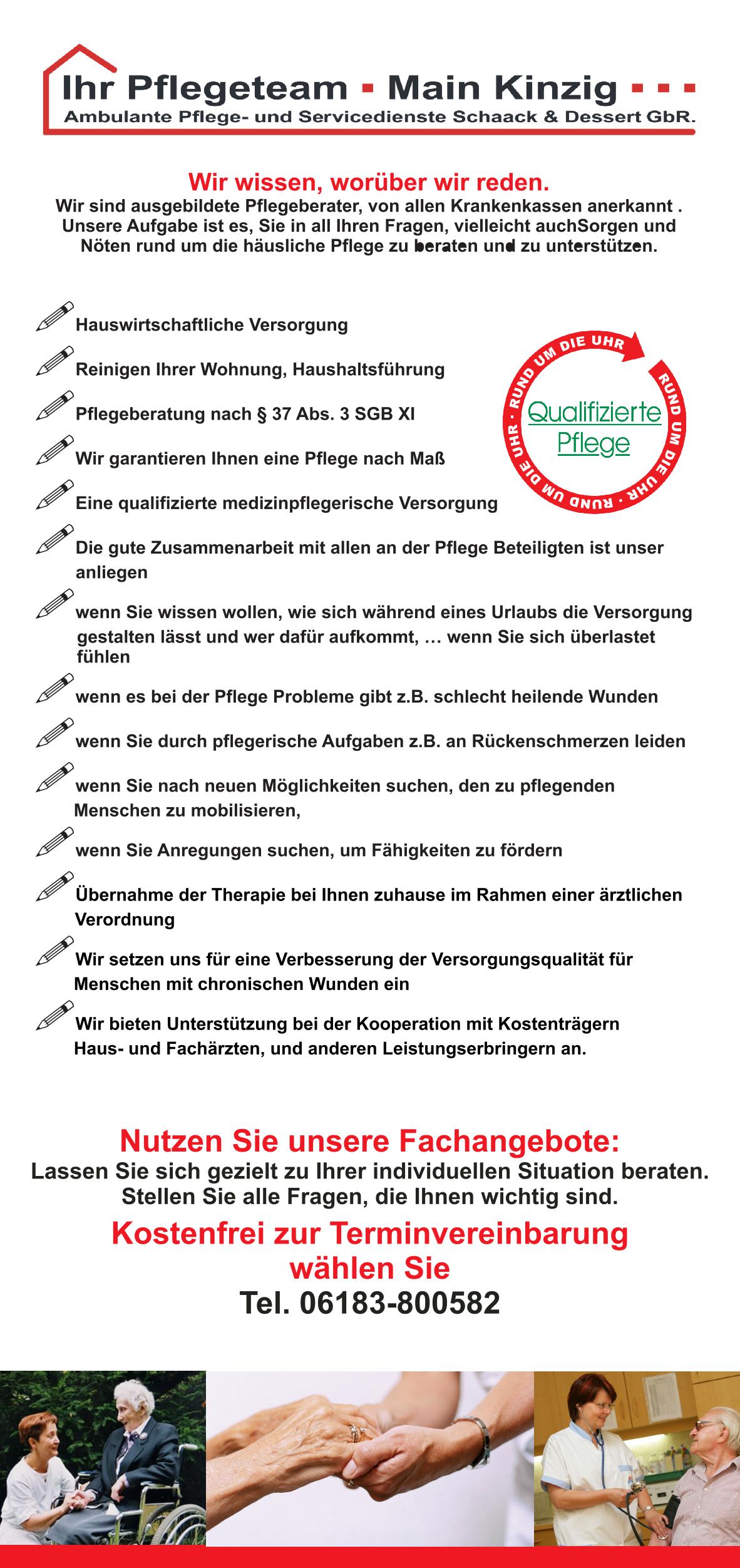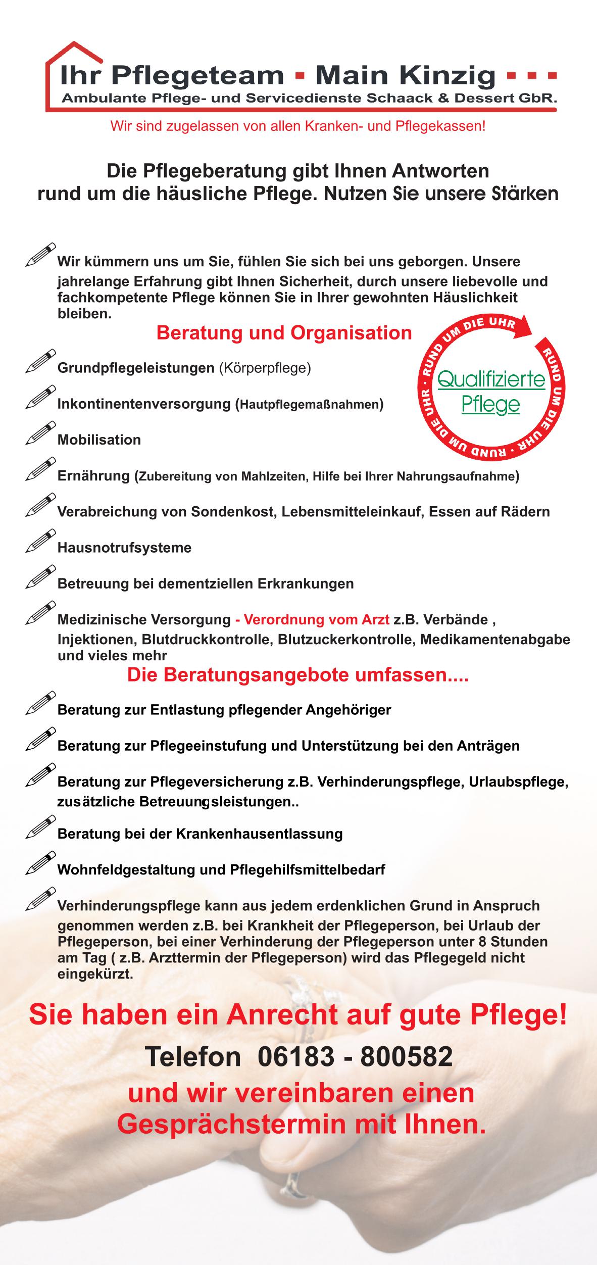 Wir freuen uns auf Sie, Ihr Pflegeteam Main Kinzig